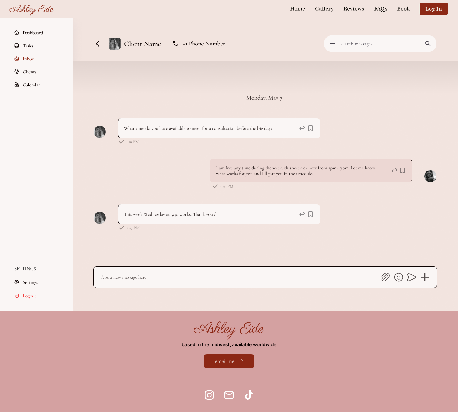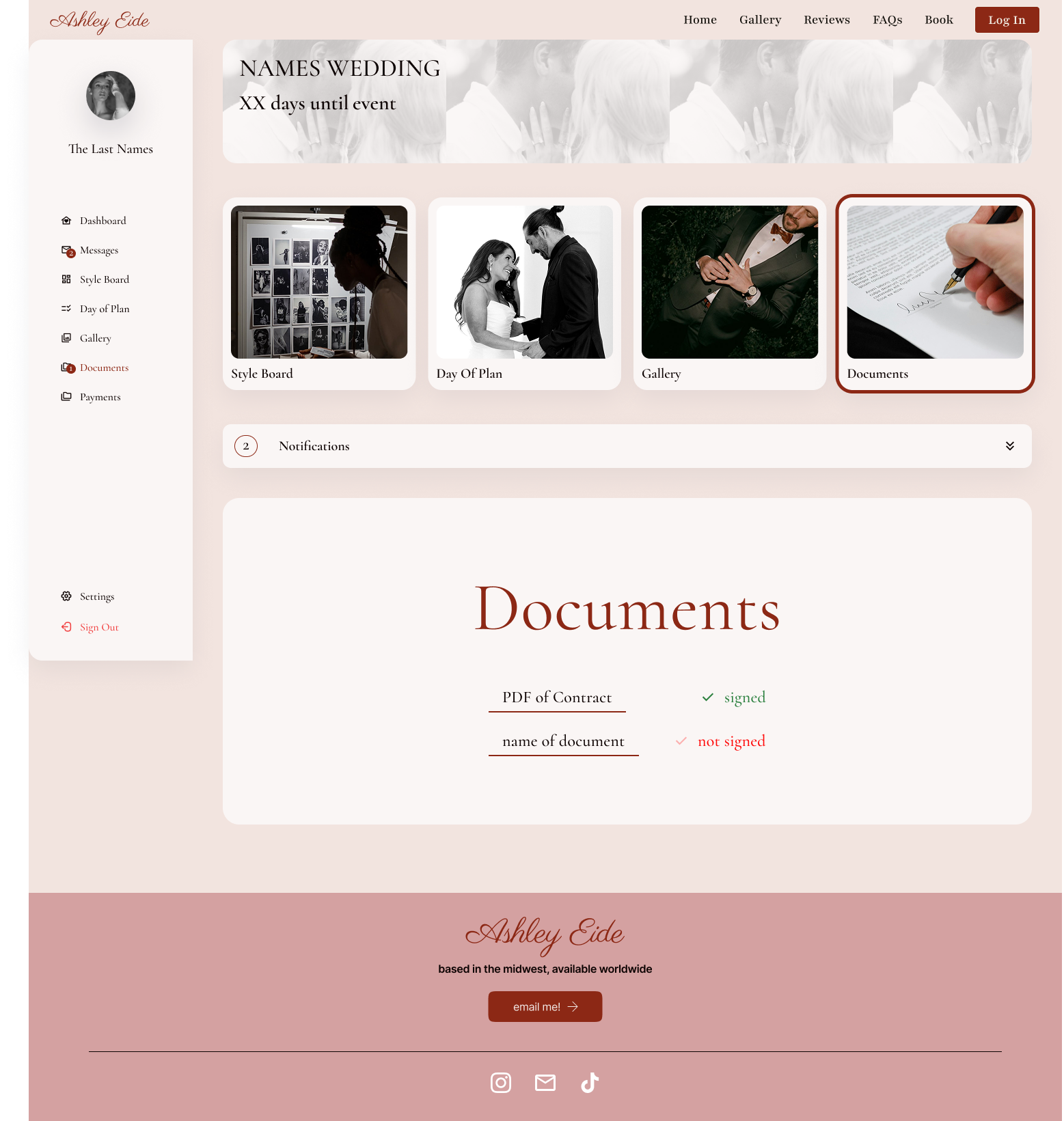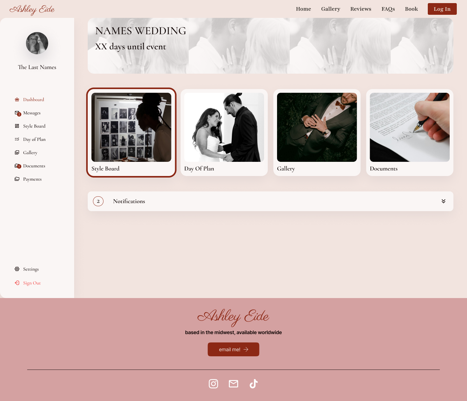 Design Insight: Including tools for task tracking supports a smoother experience for both the photographer and client, especially during busy wedding seasons.