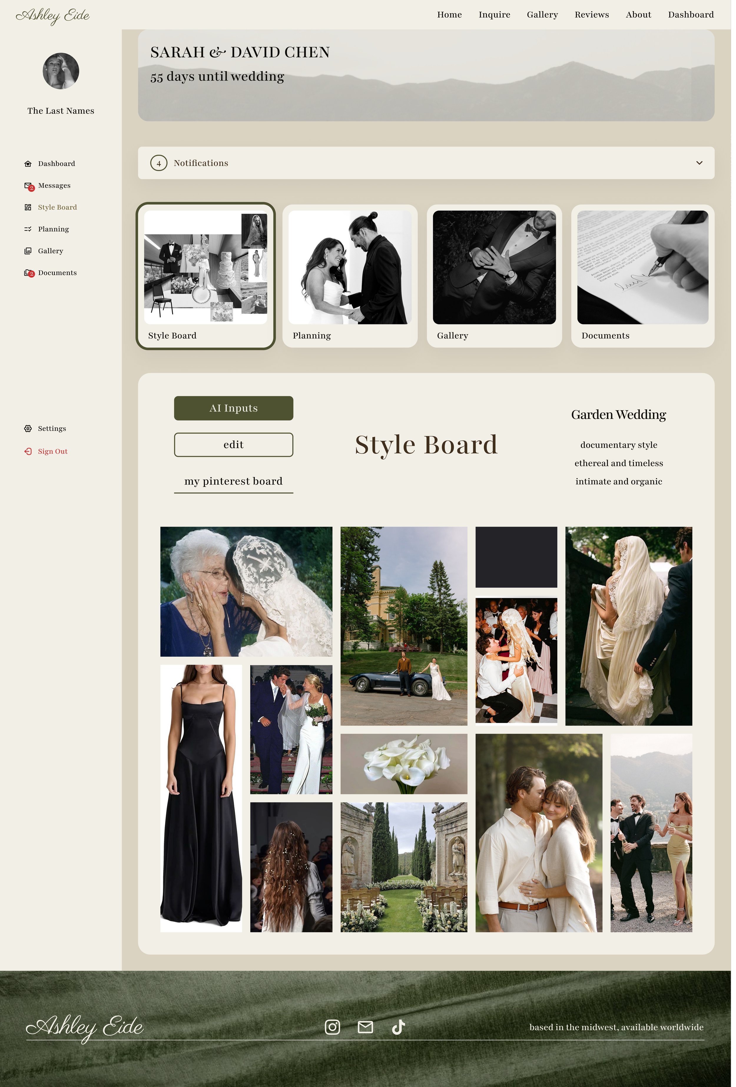 Build inspiration boards with a mix of photographer’s and client-sourced images